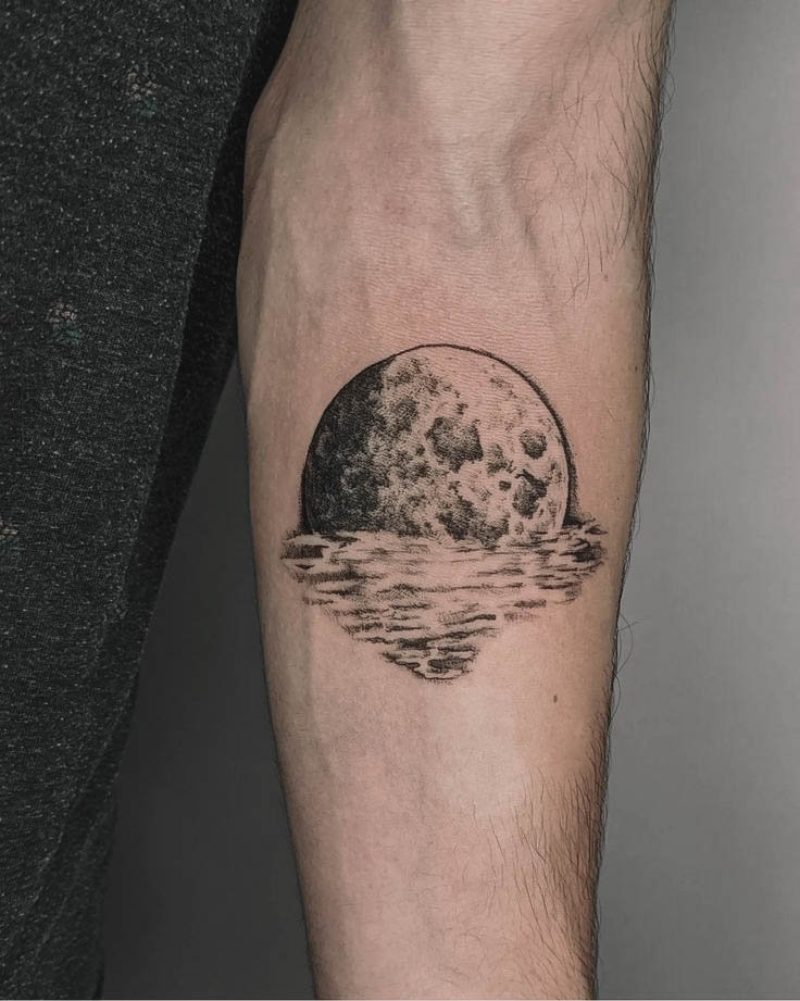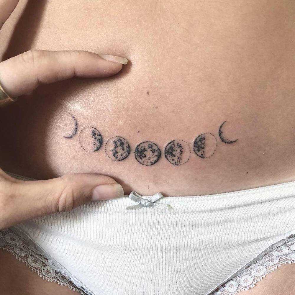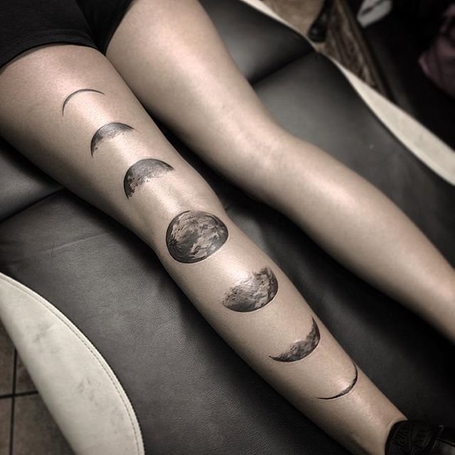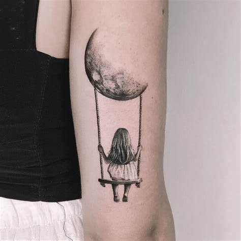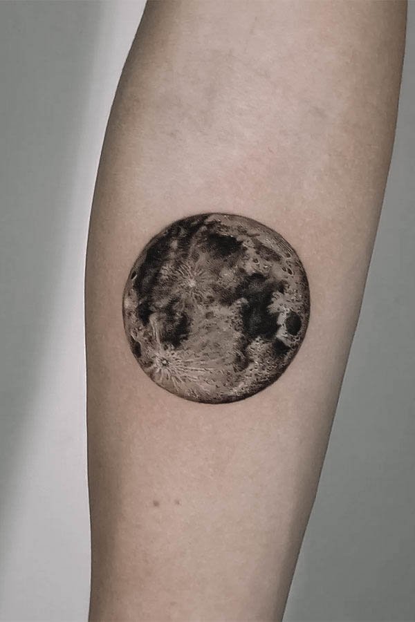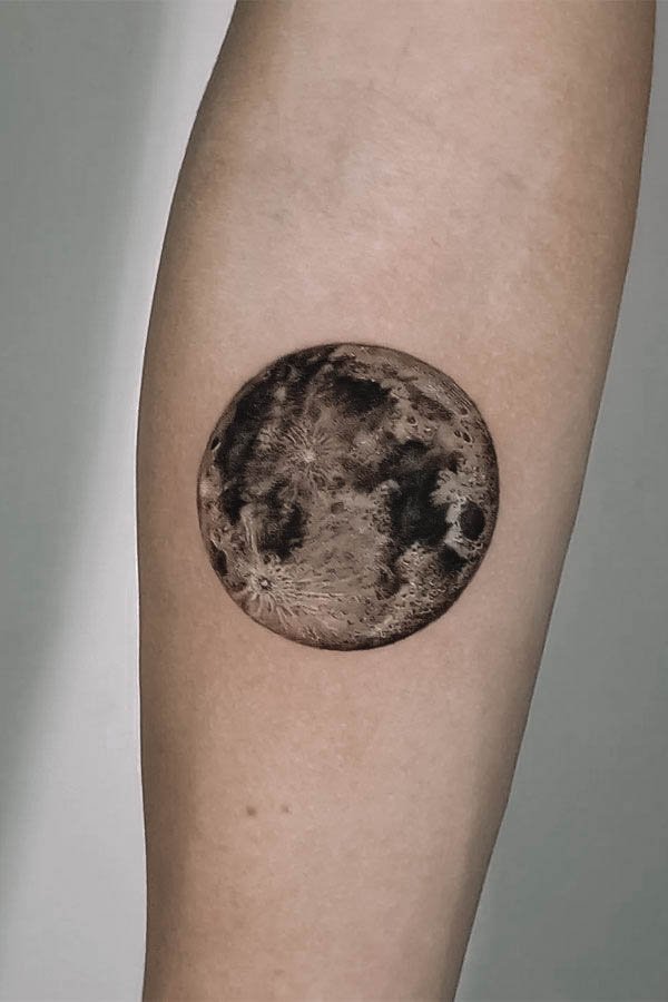 Адже, як було сказано раніше в тексті, місяць здатний впливати на людей, деяких навіть змушує ходити по ночах. Його образ часто описується у багатьох тварин, наприклад вовків, сов, кажанів та інших нічних створінь. До речі, ці ж нічні хижаки часто зображуються на тлі місяця. Так само з місяцем пов'язано усім відома тварина - кішка. Стародавні єгиптяни вважали кішок охоронницями місяця, вважалося, що їх очі є самим відображенням місяця. Астрологи пов'язують місяць зі знаком материнства, який означає коливання непостійного світу, його зміни. Так само вважається, що місяць відповідальний за емоції та думки людини. Татуювання місяця зазвичай зображується в темних тонах, оскільки він є нічним небесним світилом. Зображати його можна на будь-якому улюбленому місці, як об'ємним, так і невеликим зображенням буде виглядати однаково оригінально та таємниче.