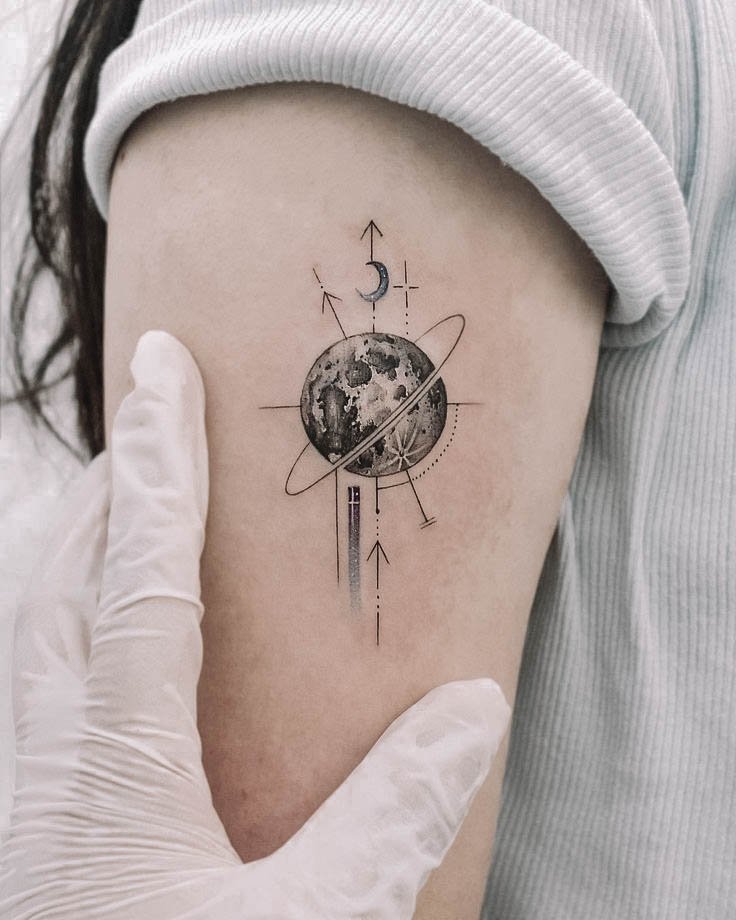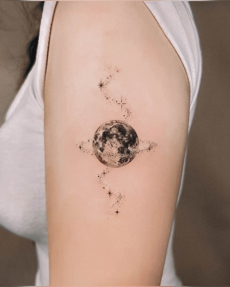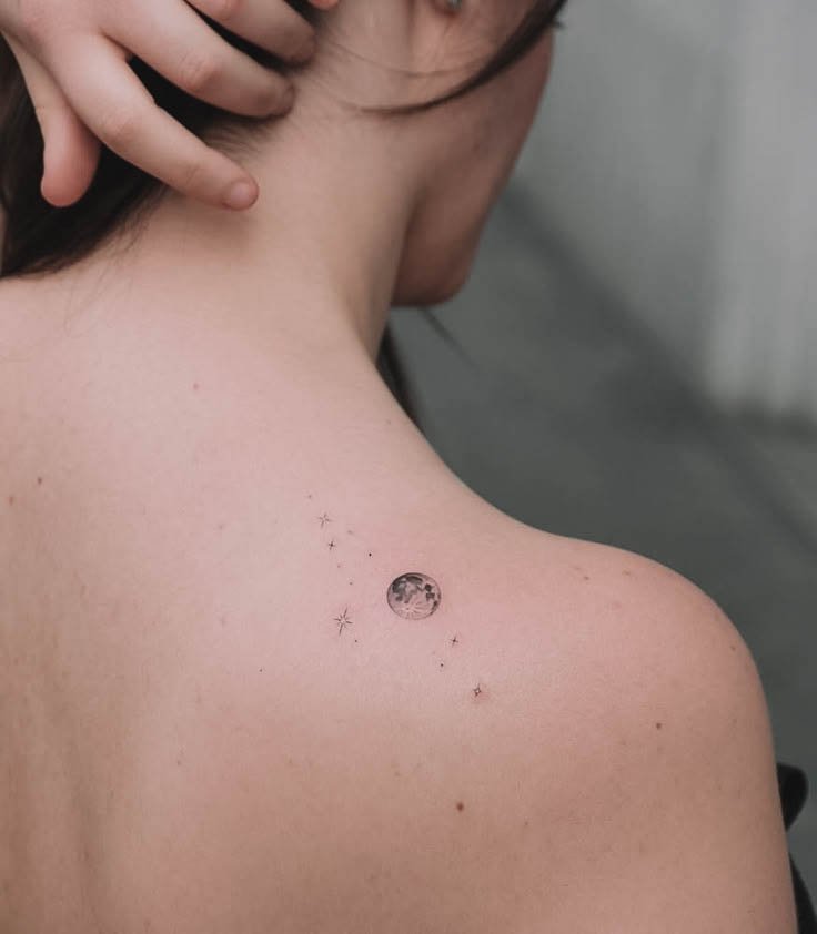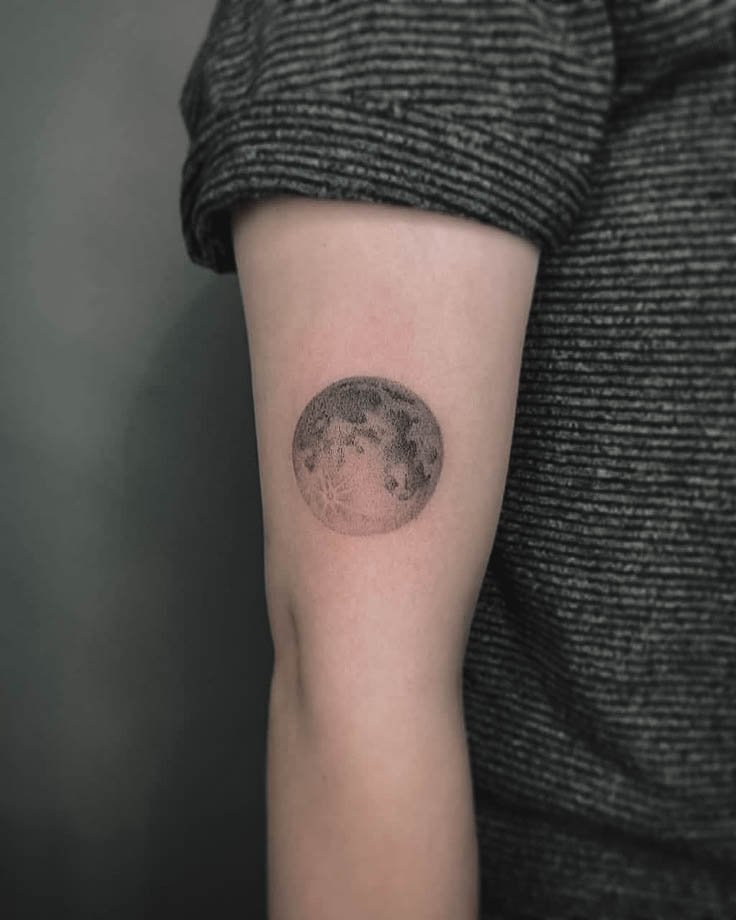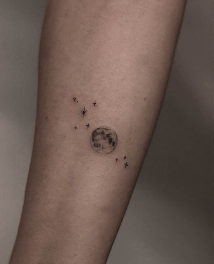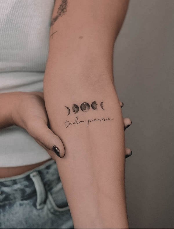 Адже, як було сказано раніше в тексті, місяць здатний впливати на людей, деяких навіть змушує ходити по ночах. Його образ часто описується у багатьох тварин, наприклад вовків, сов, кажанів та інших нічних створінь. До речі, ці ж нічні хижаки часто зображуються на тлі місяця. Так само з місяцем пов'язано усім відома тварина - кішка. Стародавні єгиптяни вважали кішок охоронницями місяця, вважалося, що їх очі є самим відображенням місяця. Астрологи пов'язують місяць зі знаком материнства, який означає коливання непостійного світу, його зміни. Так само вважається, що місяць відповідальний за емоції та думки людини. Татуювання місяця зазвичай зображується в темних тонах, оскільки він є нічним небесним світилом. Зображати його можна на будь-якому улюбленому місці, як об'ємним, так і невеликим зображенням буде виглядати однаково оригінально та таємниче.