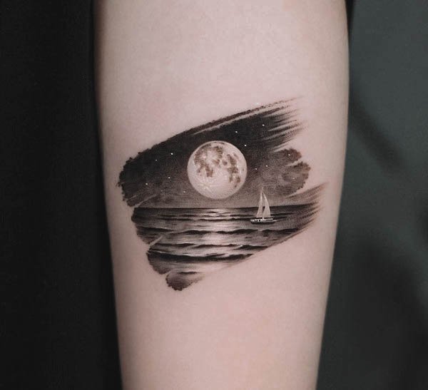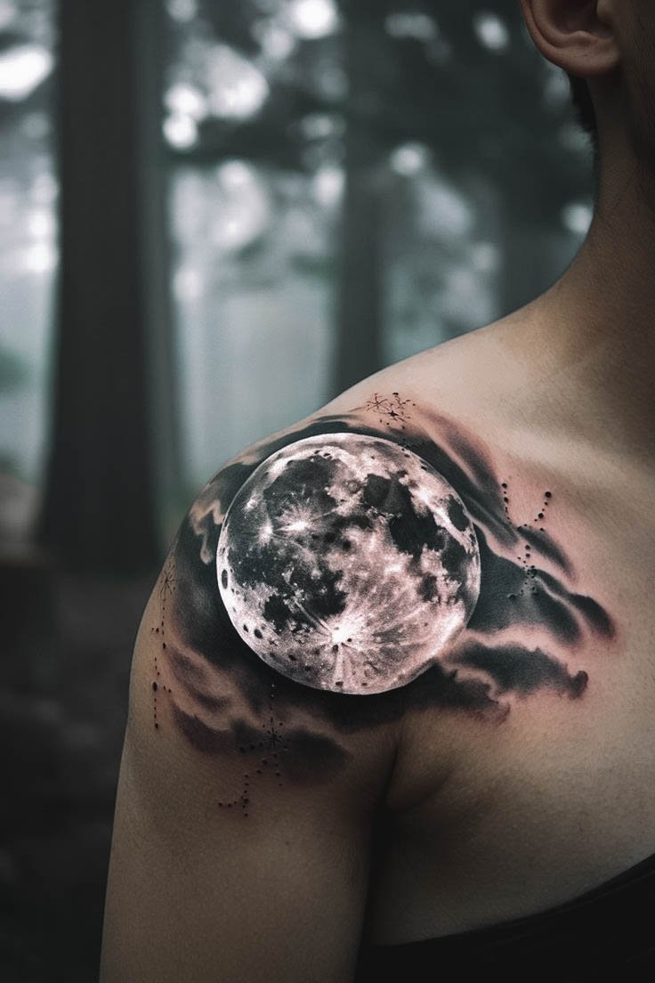 Татуювання, в якому місяць визирає із-за хмар має трохи містичний характер, часто можна зустріти таке значення як сомнамбулізм.