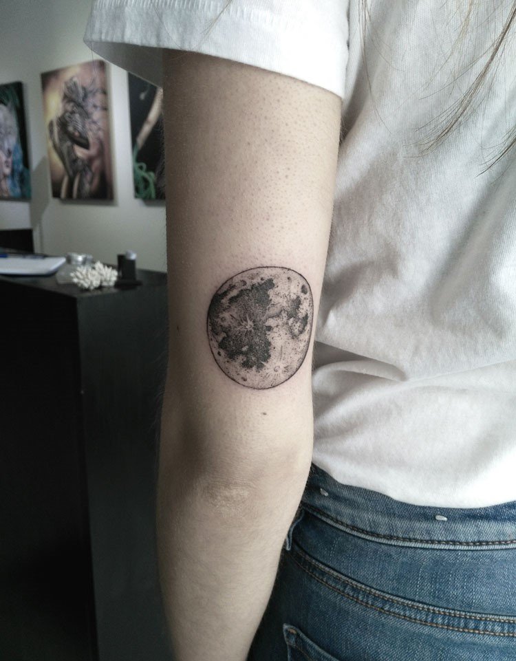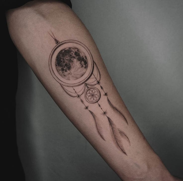 З містичним значенням зазвичай пов'язують татуювання із зображенням сови, ворона або вовка. Дуже загадковим, магічним та неймовірно ефектним здається татуювання із зображенням місяця, яке також має широкий попит. У сфері художнього татуювання є безліч варіантів зображень з виконанням місяця. Значення місяця досить захопливе, адже місяць з давніх часів описували багато народів у своїх міфах та легендах. Цікаво те, що багато народів у своїх культурах вважали, що місяць, так само як і сонце, є уособленням божества. У всі часи люди відчувають на собі силу місяця, але повністю зрозуміти та пояснити цей вплив вони досі не можуть. Хоч місяць і є покровителем ночі, маючи багато загадок та таємниць, татуювання з його зображенням вкрай рідко несе в собі що-небудь негативне. Татуювання з зображенням місяця наділене глибоким трактуванням та є універсальним. Багато чоловіків та жінок обирають татуювання місяця, який притягує всіх своєю таємничістю.