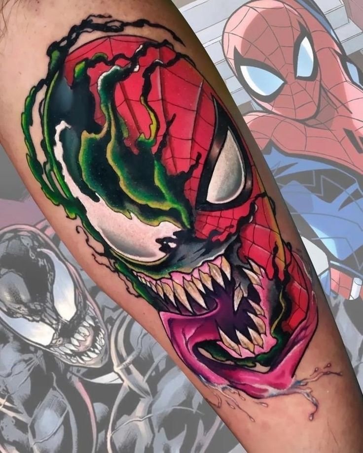 Зображення Людини Павука на тілі зазвичай виглядають органічно.
