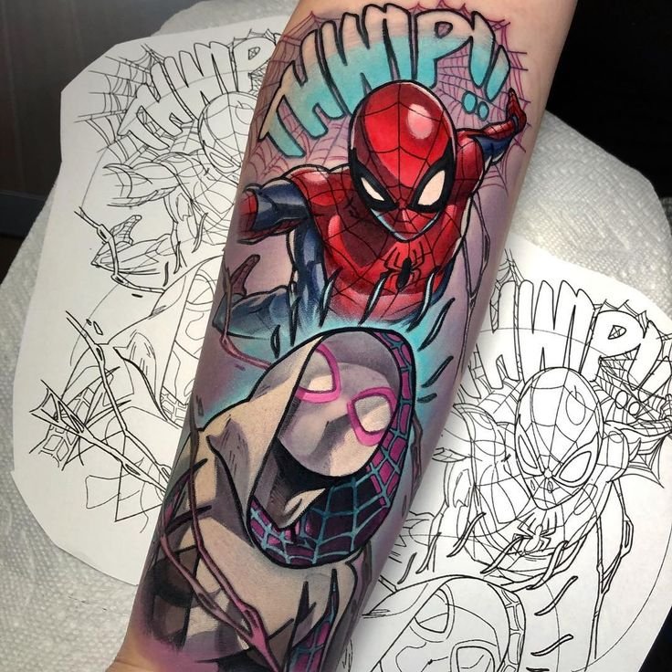 - Татуювання, що відтворюють стиль коміксів. З характерними яскравими кольорами та жирними насиченими контурами.
