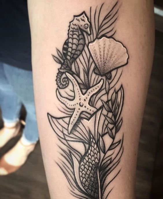 Широкий попит у зображеннях акул, китів, дельфінів, восьминогів й так далі. Дуже популярні у сфері художнього татуювання морські зірки. Це дивні створіння, у природі яких налічується близько 1600 видів.
