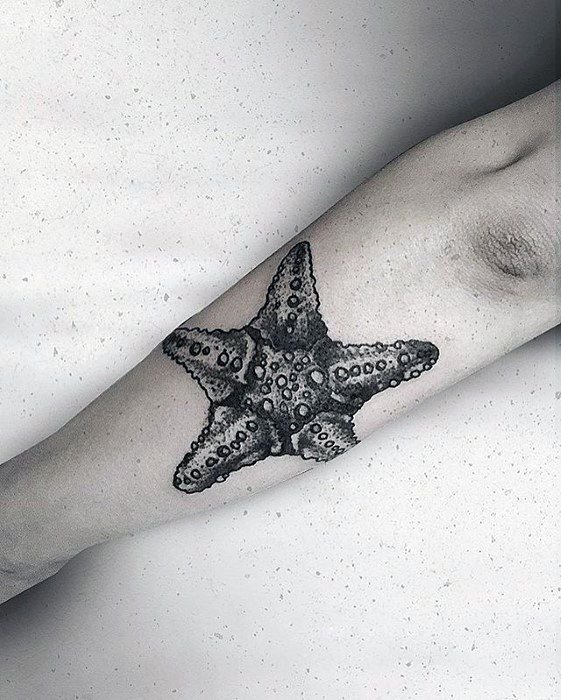 Хлопці обирають більш масштабні зображення морських зірок, прикрашаючи їм передпліччя, плечі, спину або гомілку.