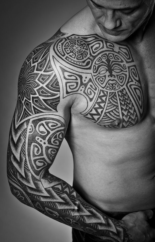 Тату орнаментал містять в собі безліч елементів у вигляді хвиль, спіралей, рослин, геометричних фігур, вузлів.