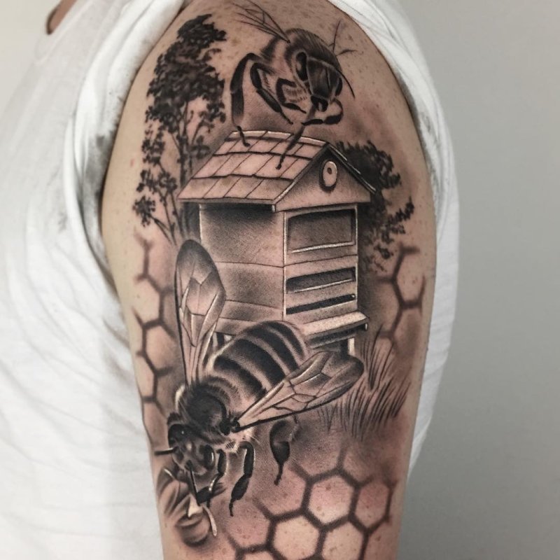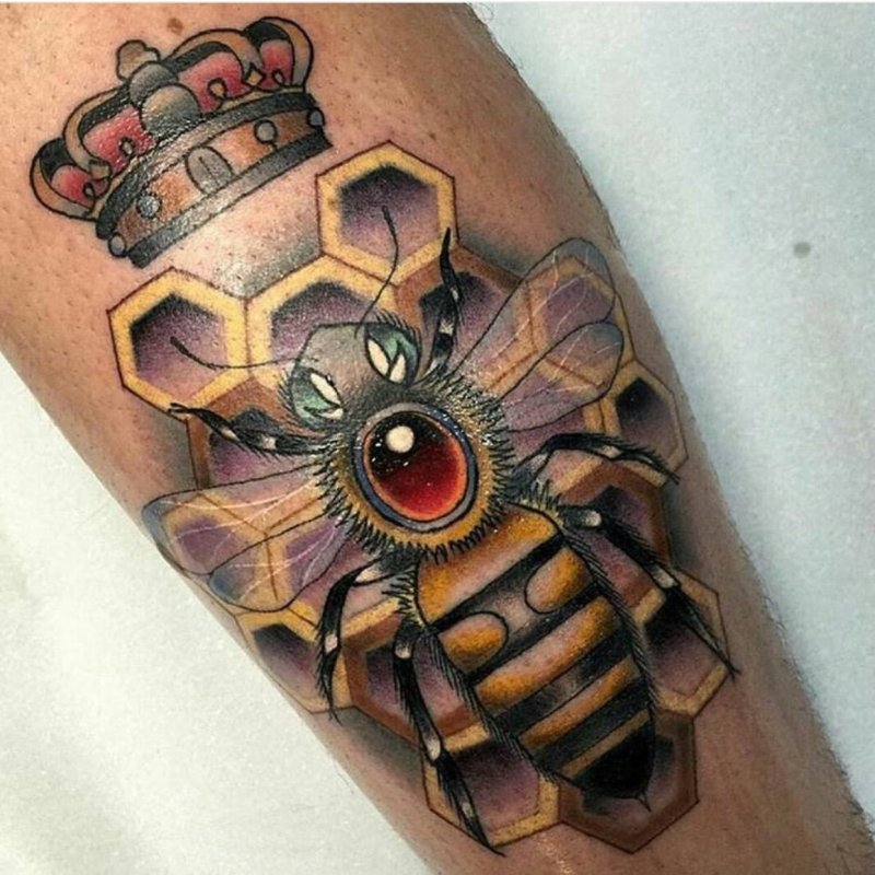 Той факт, що робочі бджоли гинуть після того, як вони вжалять ворога заради бджолиної матки і вулика, також асоціюють із жертовністю і відданістю. Тим часом, завдяки неймовірно витонченому дизайну сот, ще одне значення татуювання бджіл - це неймовірна естетика, структурованість і розвинений колективний інтелект. Такий боді-арт чудово підійде світлим і оптимістичним людям.