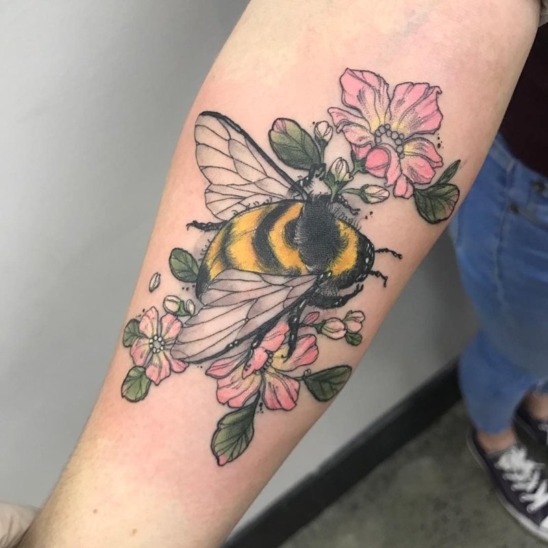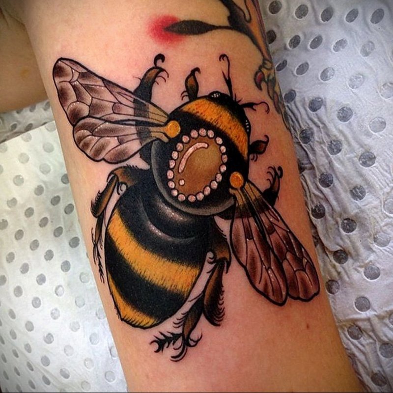 Залежно від використовуваних символів, відтінків кольорів, стилів, атрибутів і технік змінюється посил татуювання з бджолою.