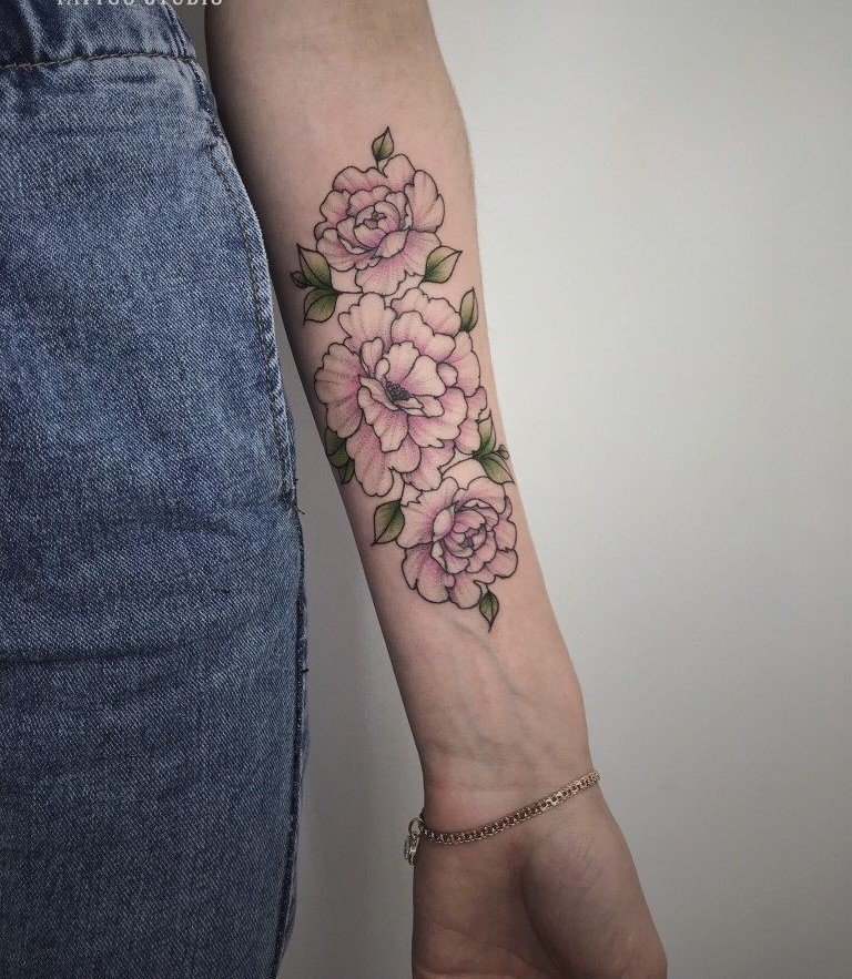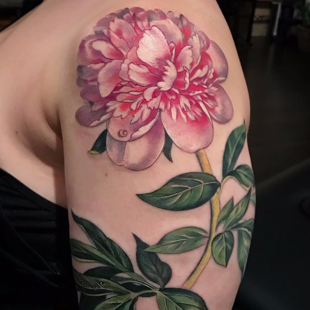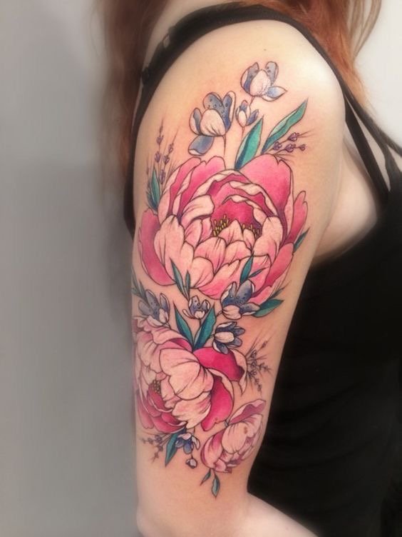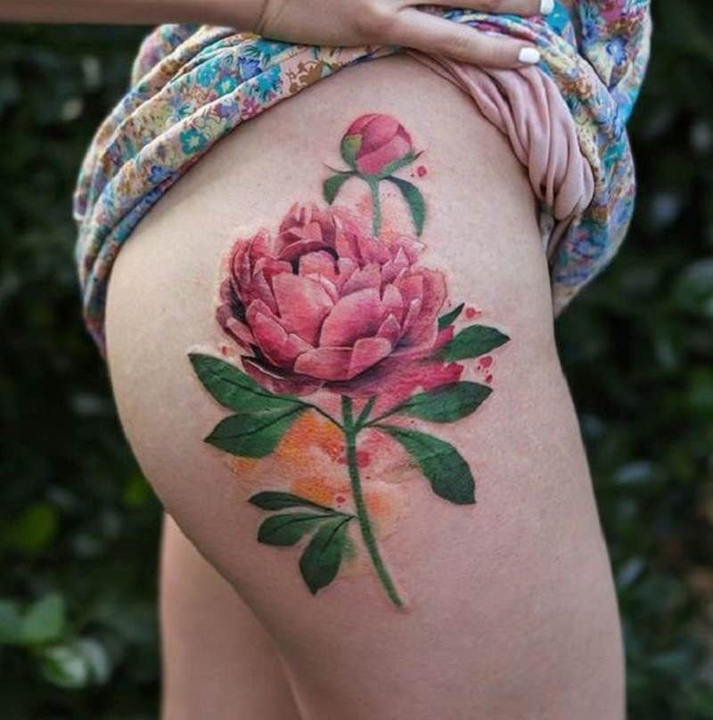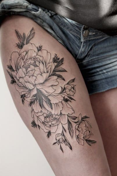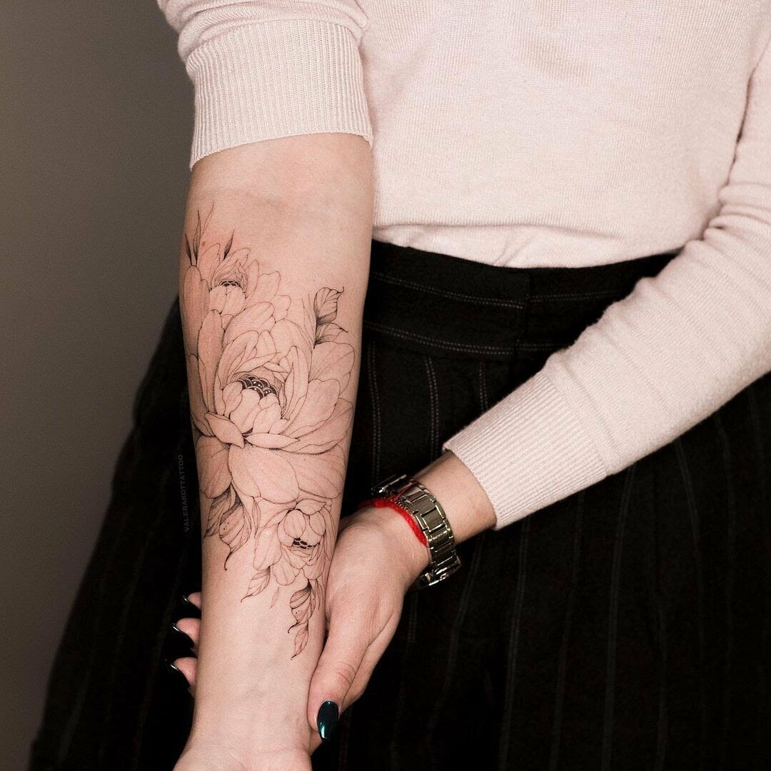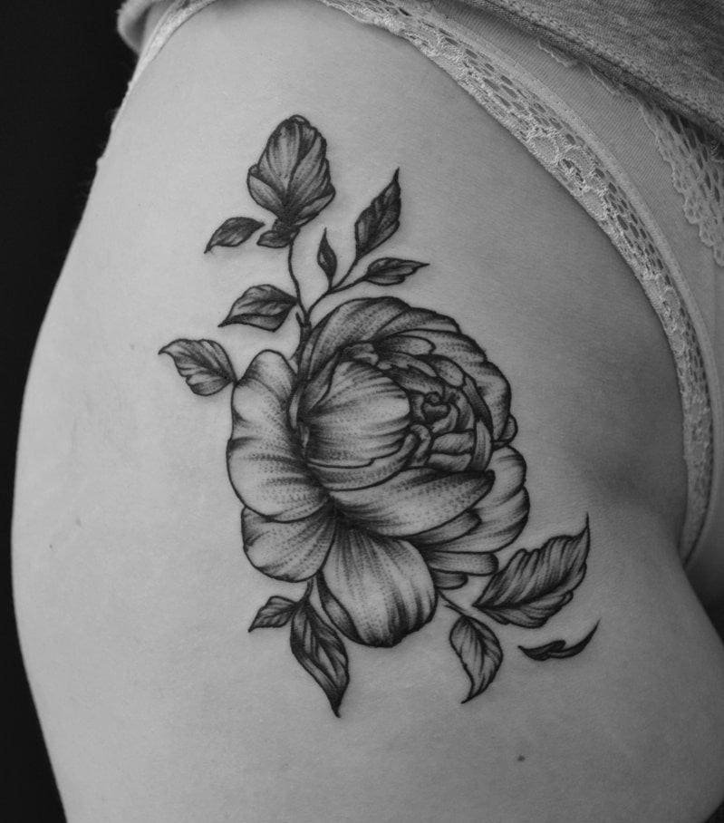 Тату півонії вибирають не тільки чоловіки, але і безліч жінок.