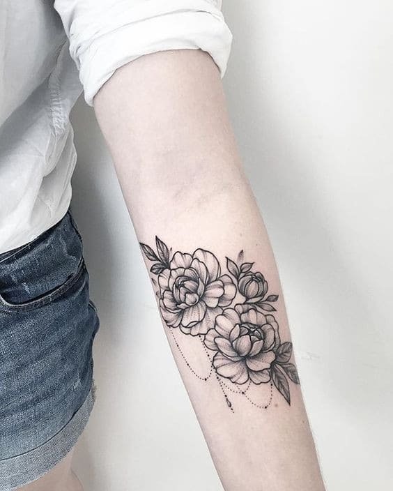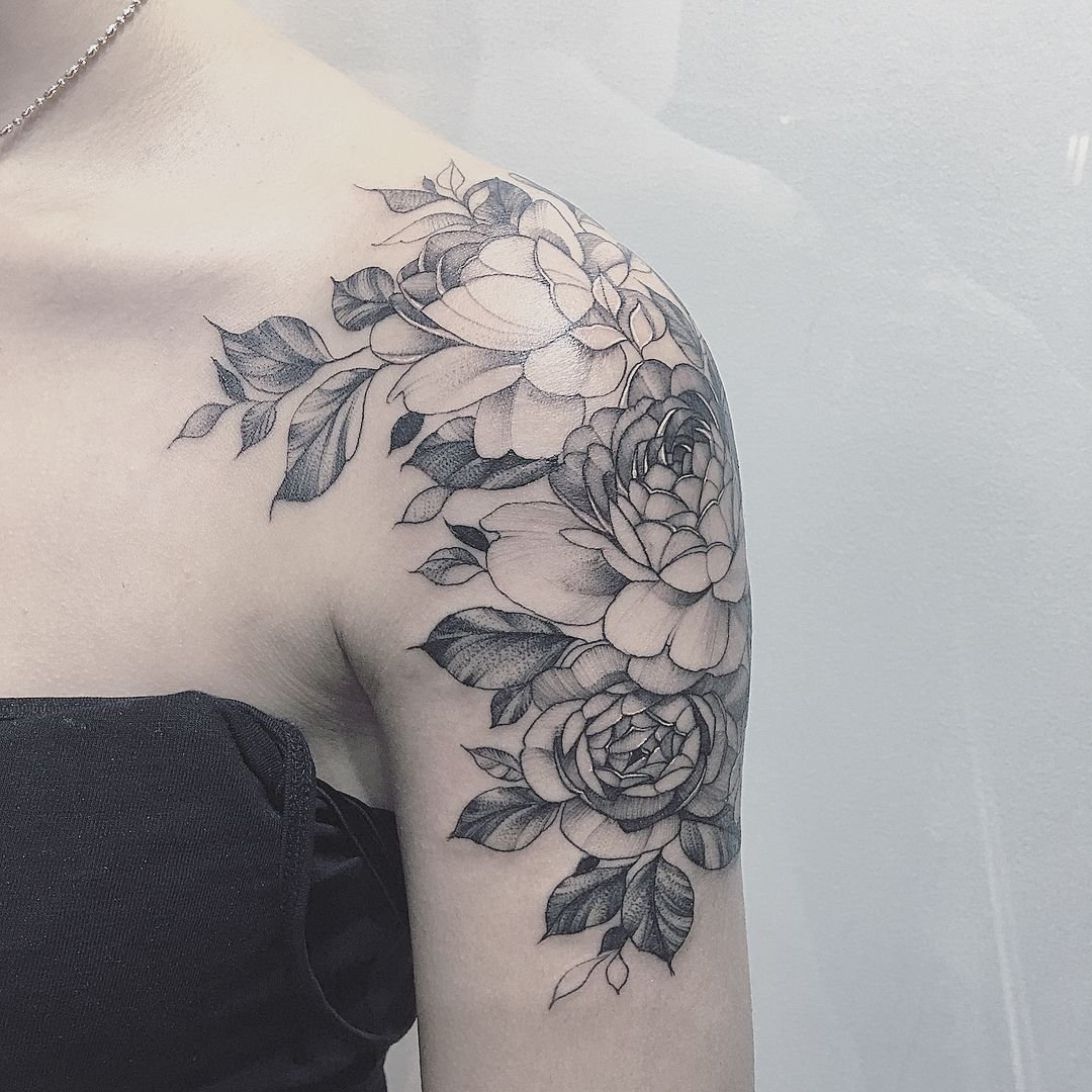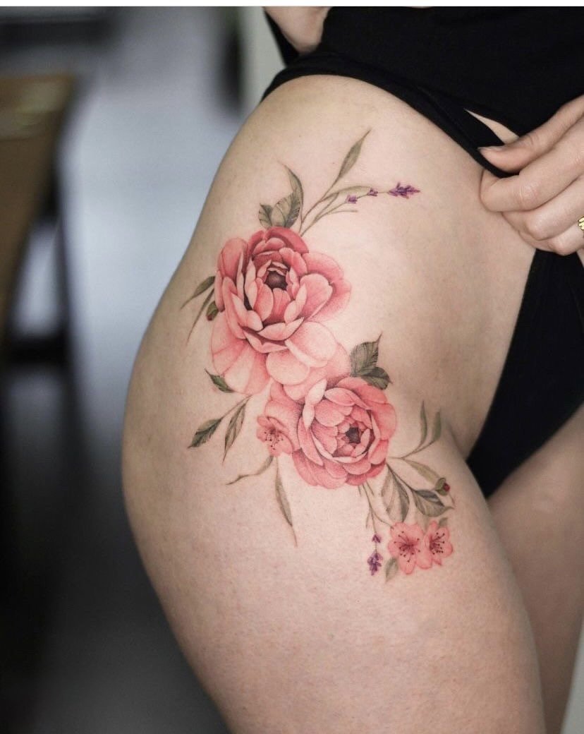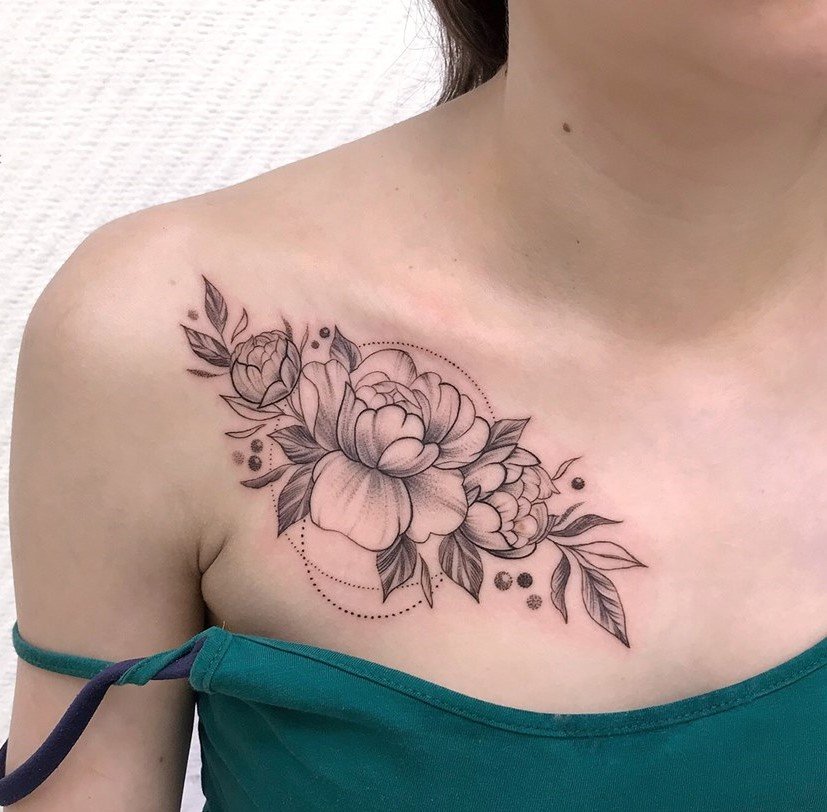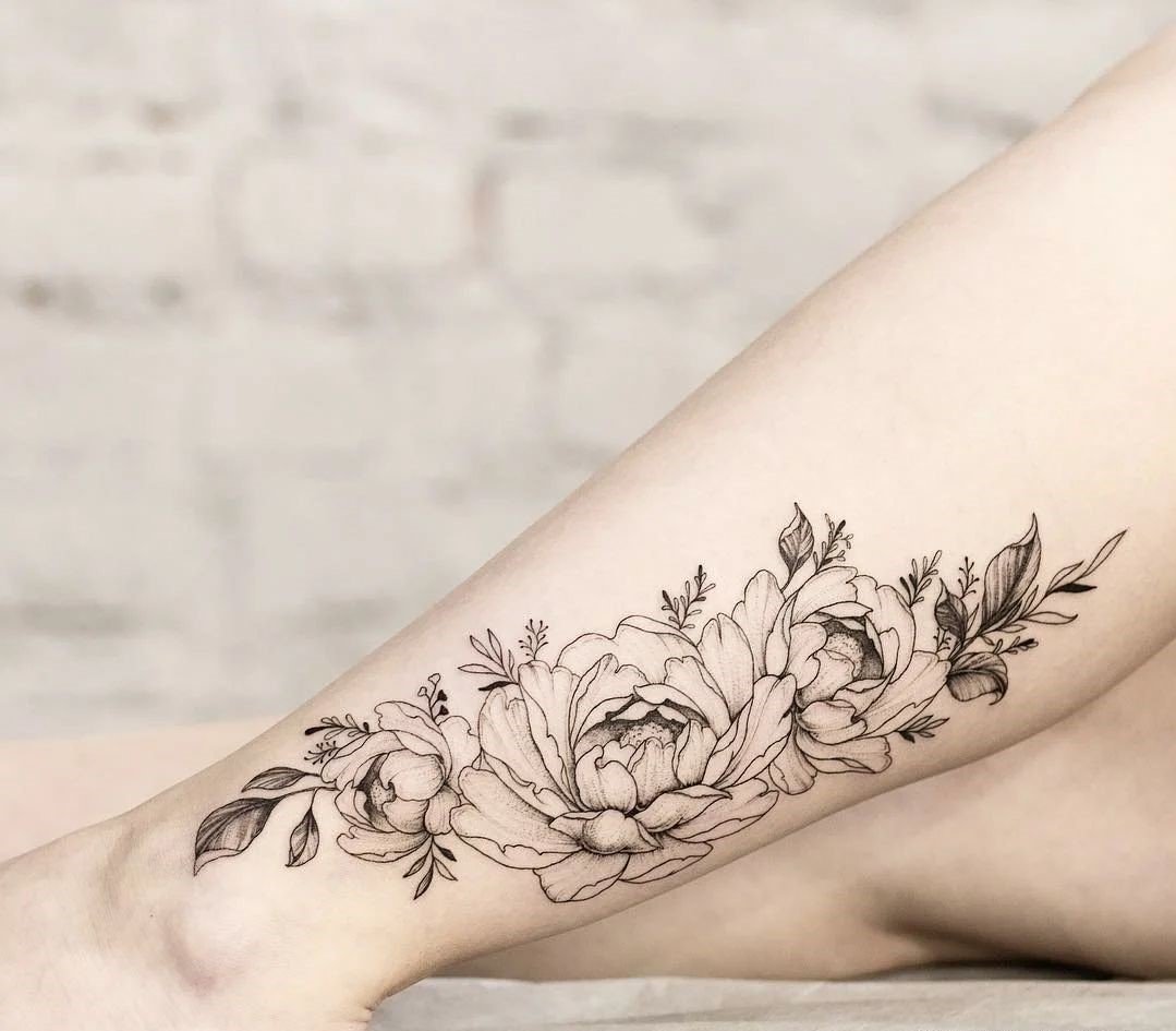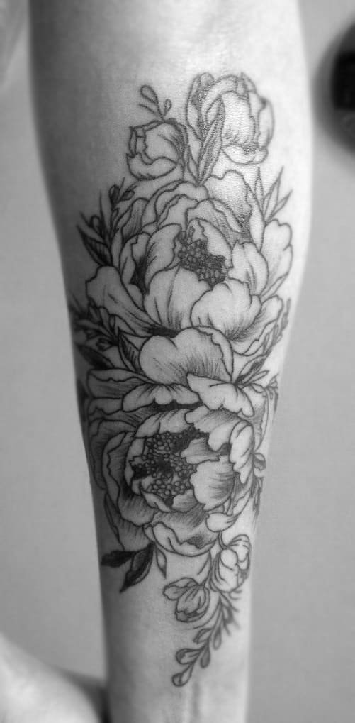 Тату півонії вибирають не тільки чоловіки, але і безліч жінок.
