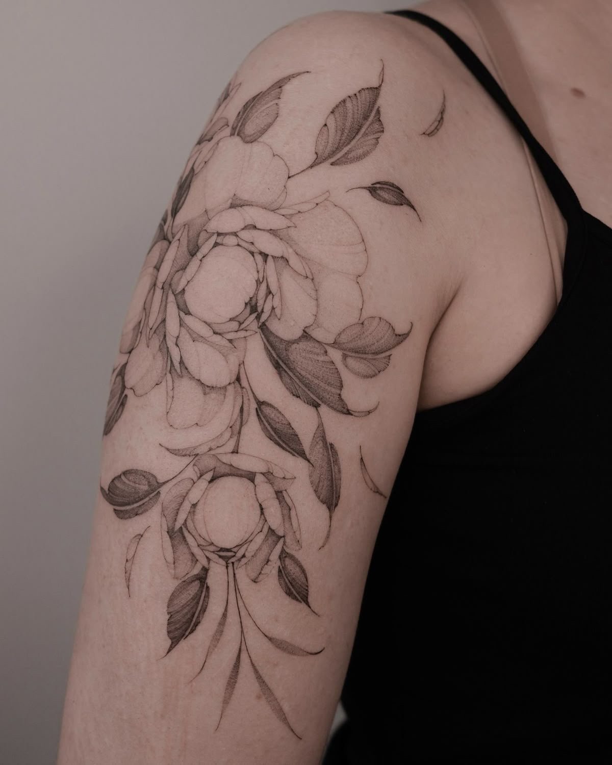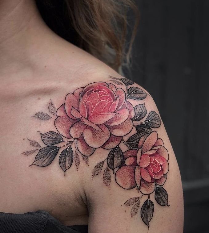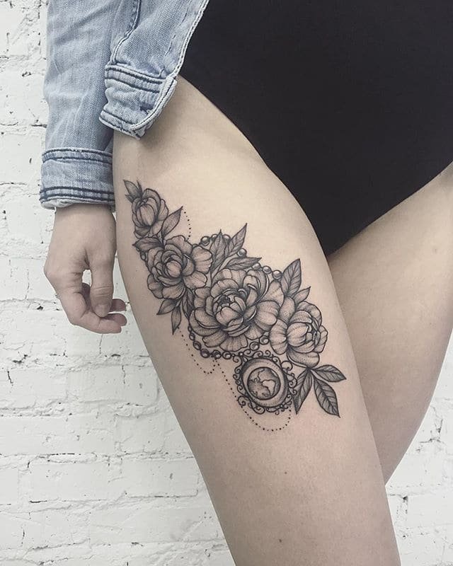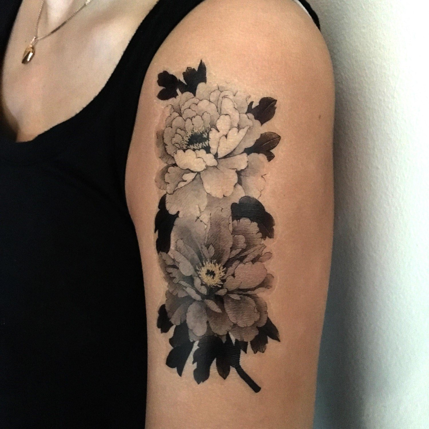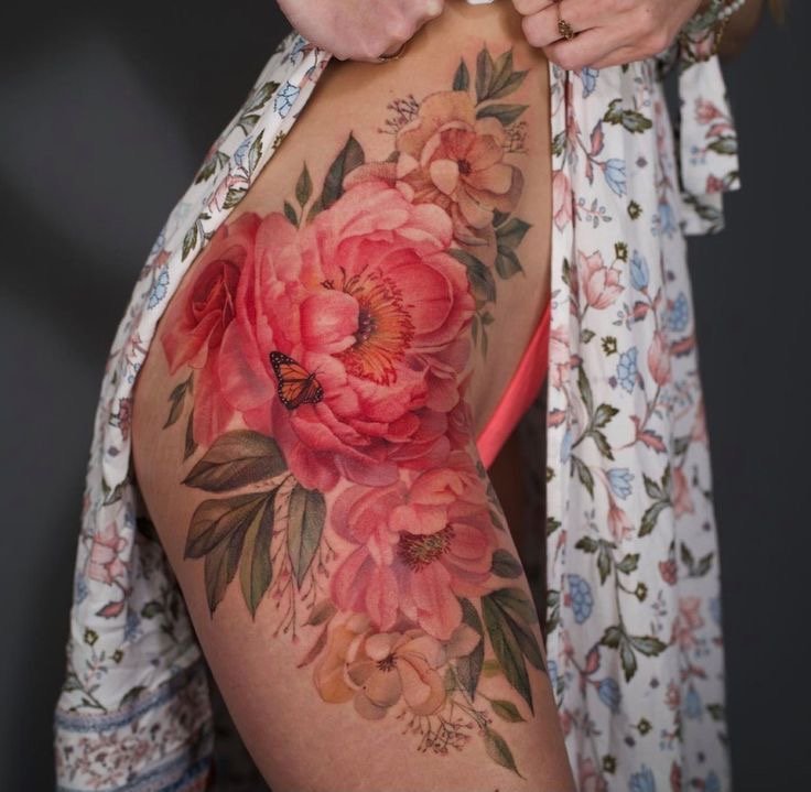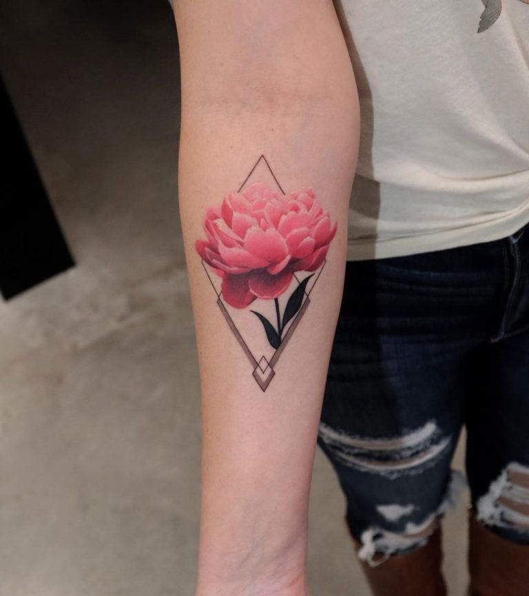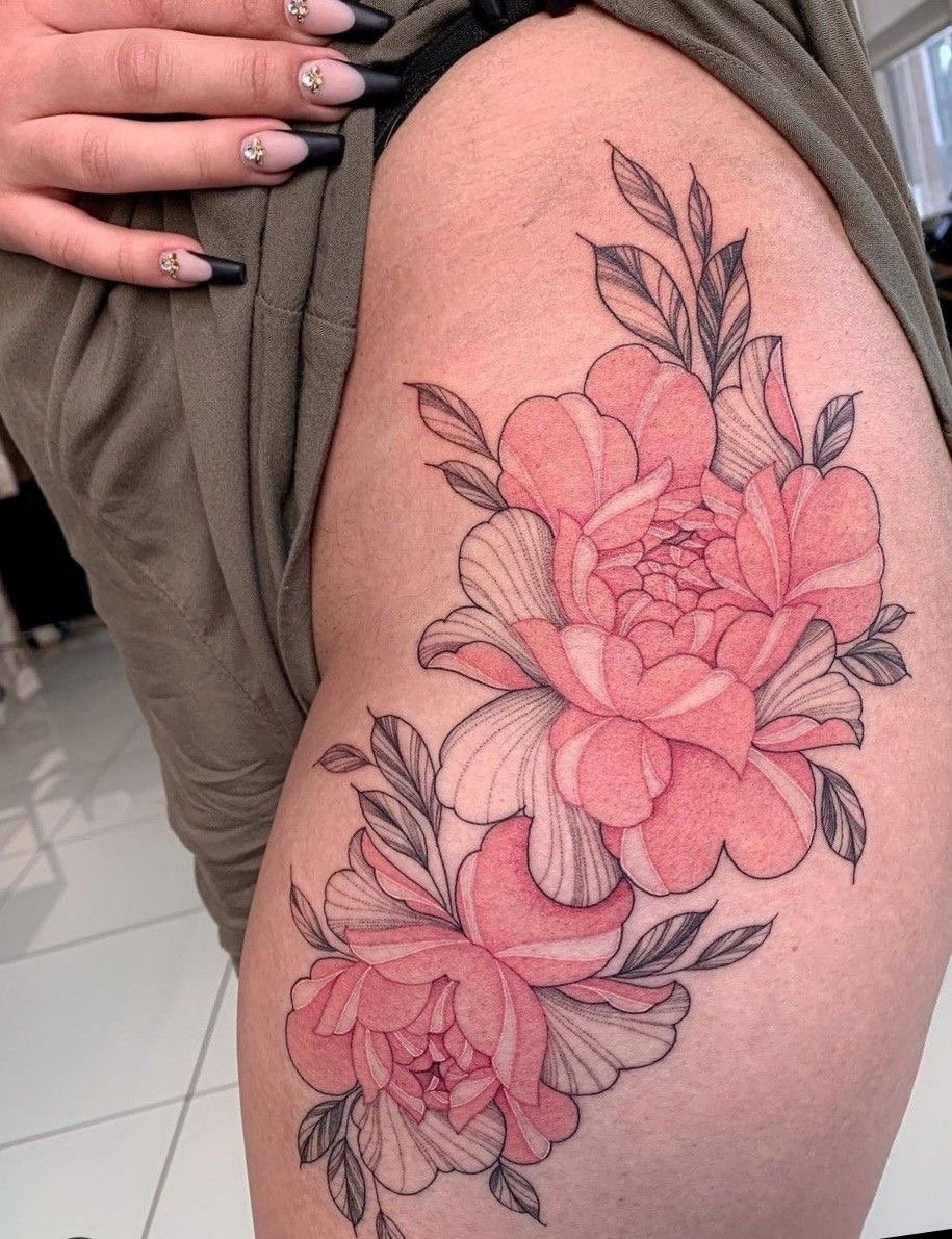 Тату півонії вибирають не тільки чоловіки, але і безліч жінок.