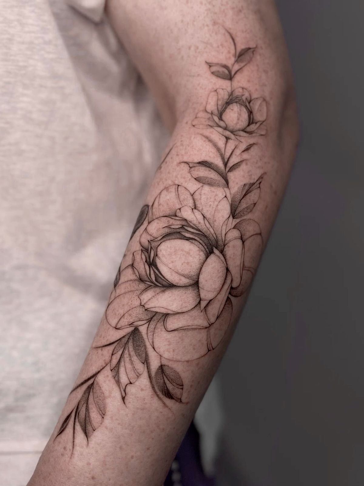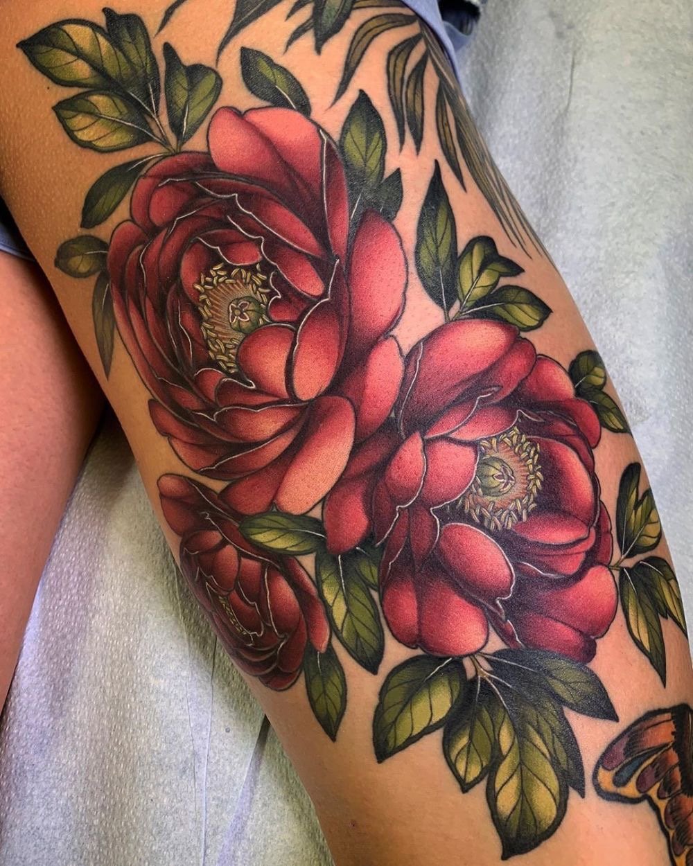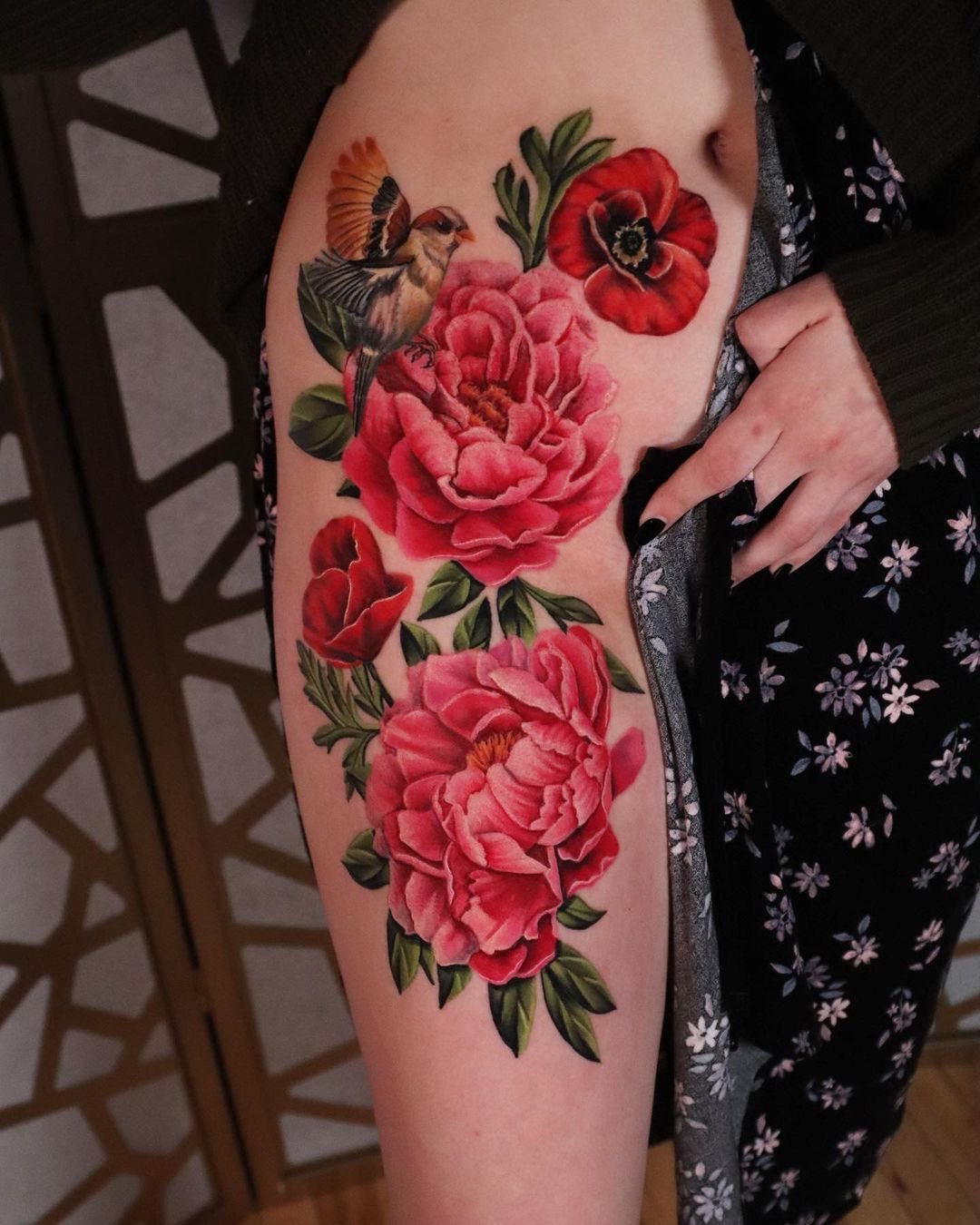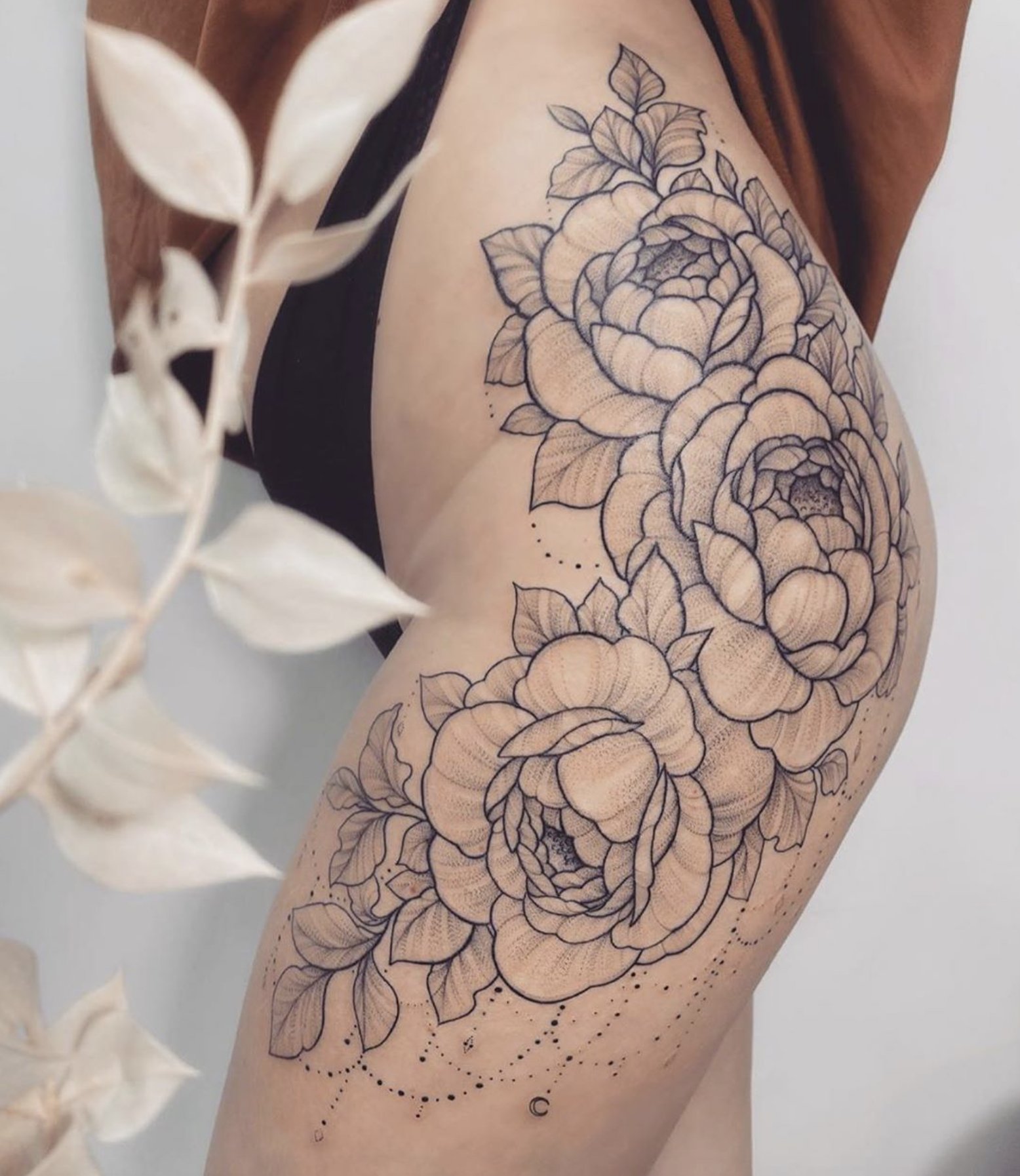 Тату півонії вибирають не тільки чоловіки, але і безліч жінок.