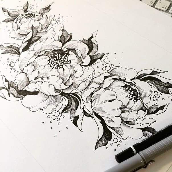 Тату ескізи "Півонія"