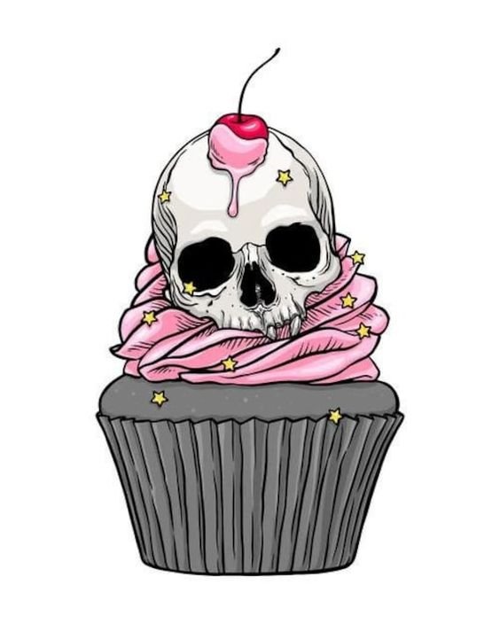 Тістечко із зображенням черепа несе в собі посилання того, що надмірне вживання солодощів може вбити.