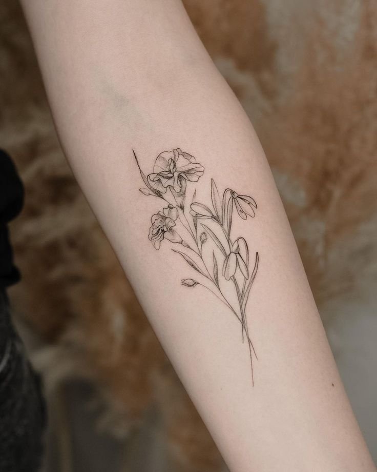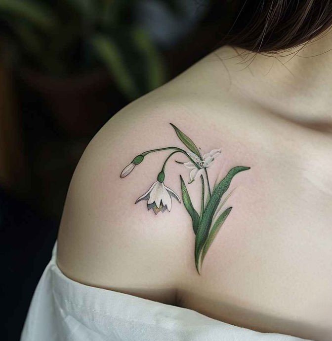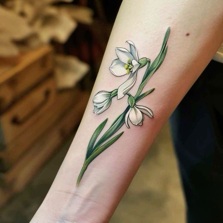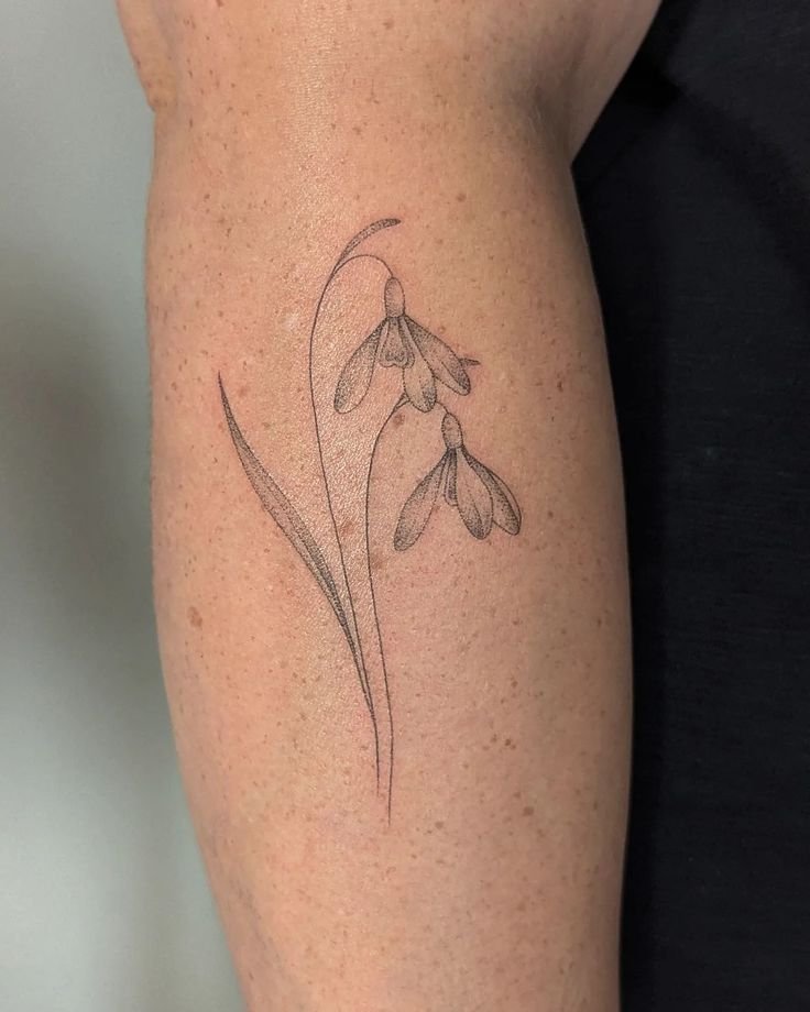 - Підсніжник — це досить універсальна квітка, яку можна адаптувати під будь-які стилі і розміри. Маленький мінімалістичний малюнок на зап’ясті чи велика композиція на спині — ця квітка буде гармонійно виглядати як в одному, так і в іншому варіанті. Це також чудовий вибір для тих, хто віддає перевагу татуюванням, що відображають простоту і елегантність.