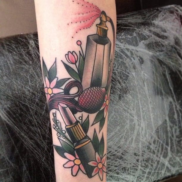 Власниця такого ескізу, тату помади, буде володіти тільки приємними якостями, залучати жіночністю і м'яким характером. Також варто звернути особливу увагу на деталі виконання татуювання. Зображення помади може бути доповнена різними елементами з жіночої косметички, це можуть бути: