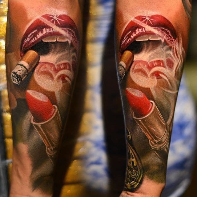 Або будь-які інші деталі, які також вигідно підкреслять зображення тату помади на тілі. Але хоч як би доповнювався ескіз татуювання, характеристика залишиться колишньою.