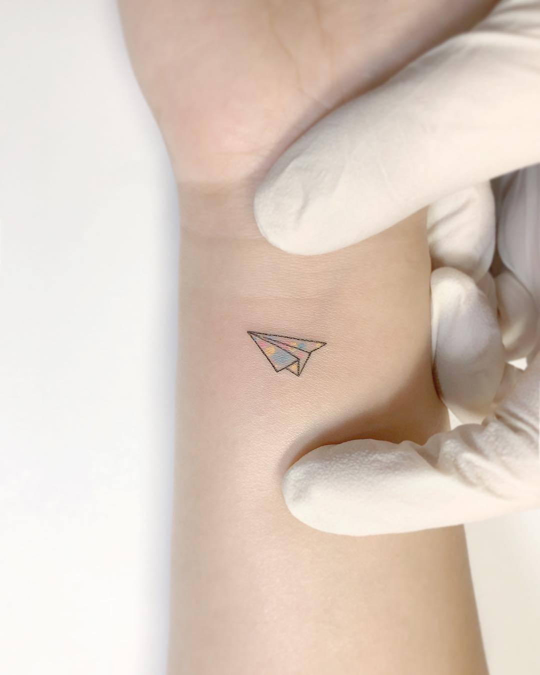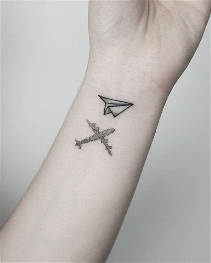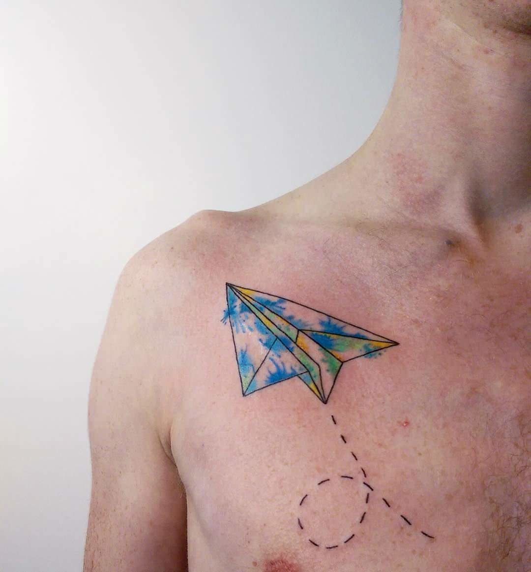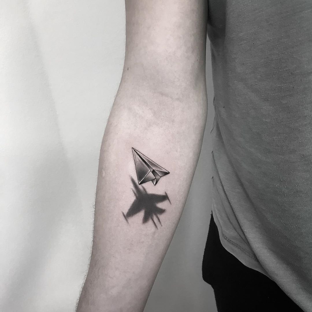 Також дуже часто можна зустріти на тілі зображення паперового літачка. Такий тату ескіз може розповісти про вашу волелюбність і бажання прагнути добиватися нових цілей. Володар паперового тату літачка підкреслить всі ваші мирні та сприятливі життєві наміри. В цілому татуювання літака це досить цікавий та унікальний символ - відмінно підійде мрійникам, які будують своє життя самі - не боячись правил і не помічаючи кордонів.