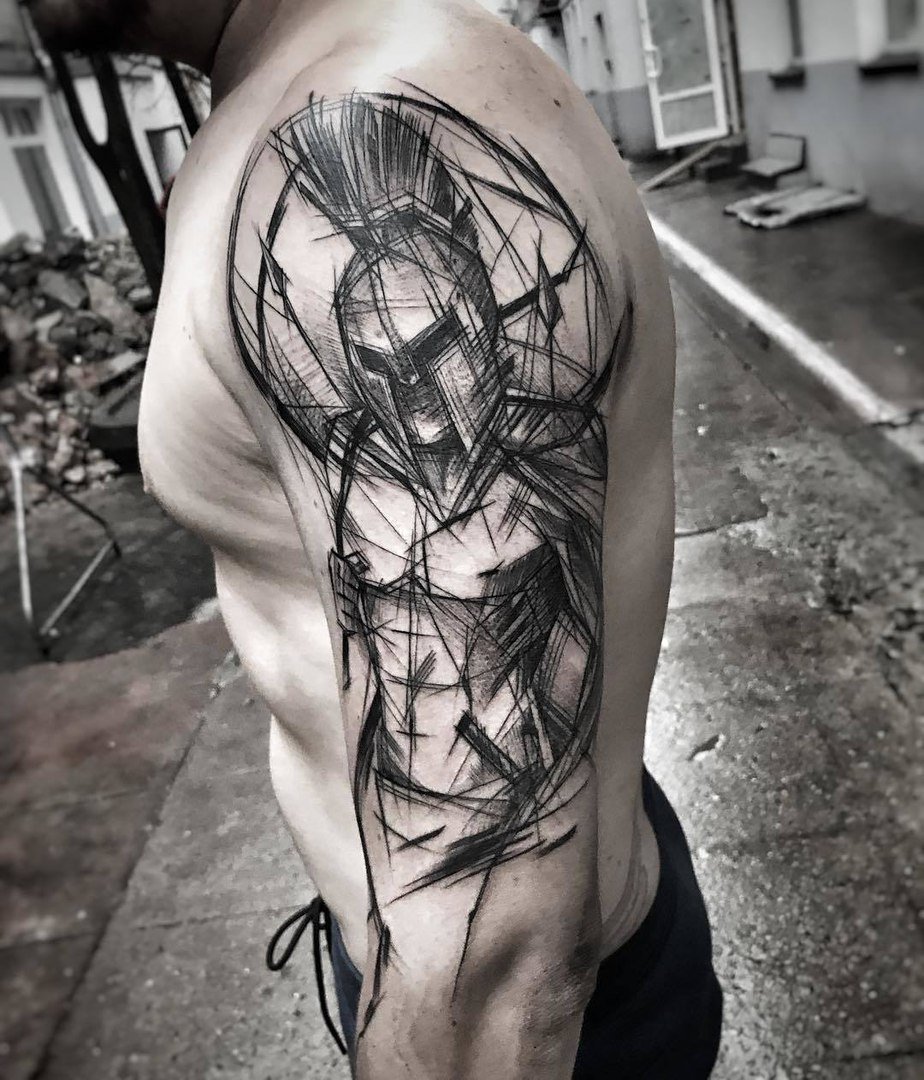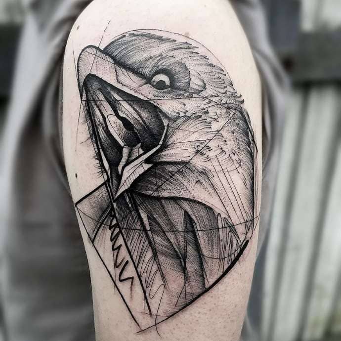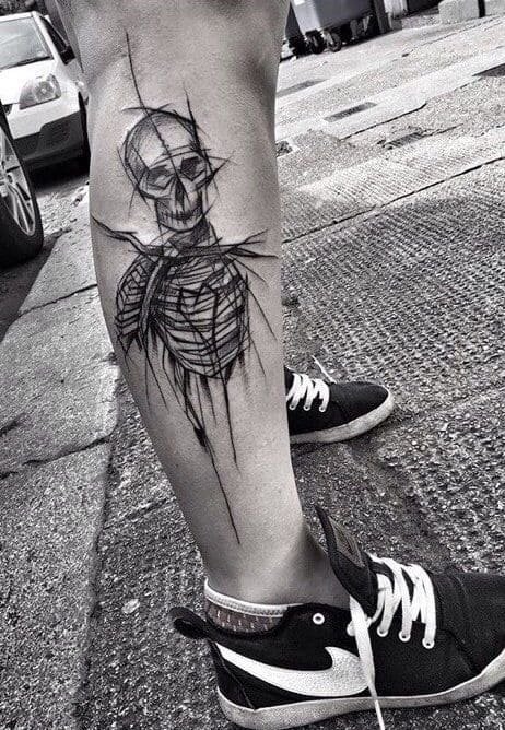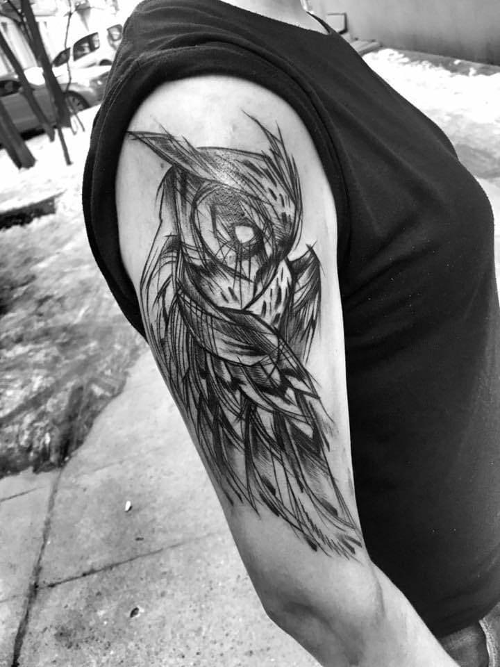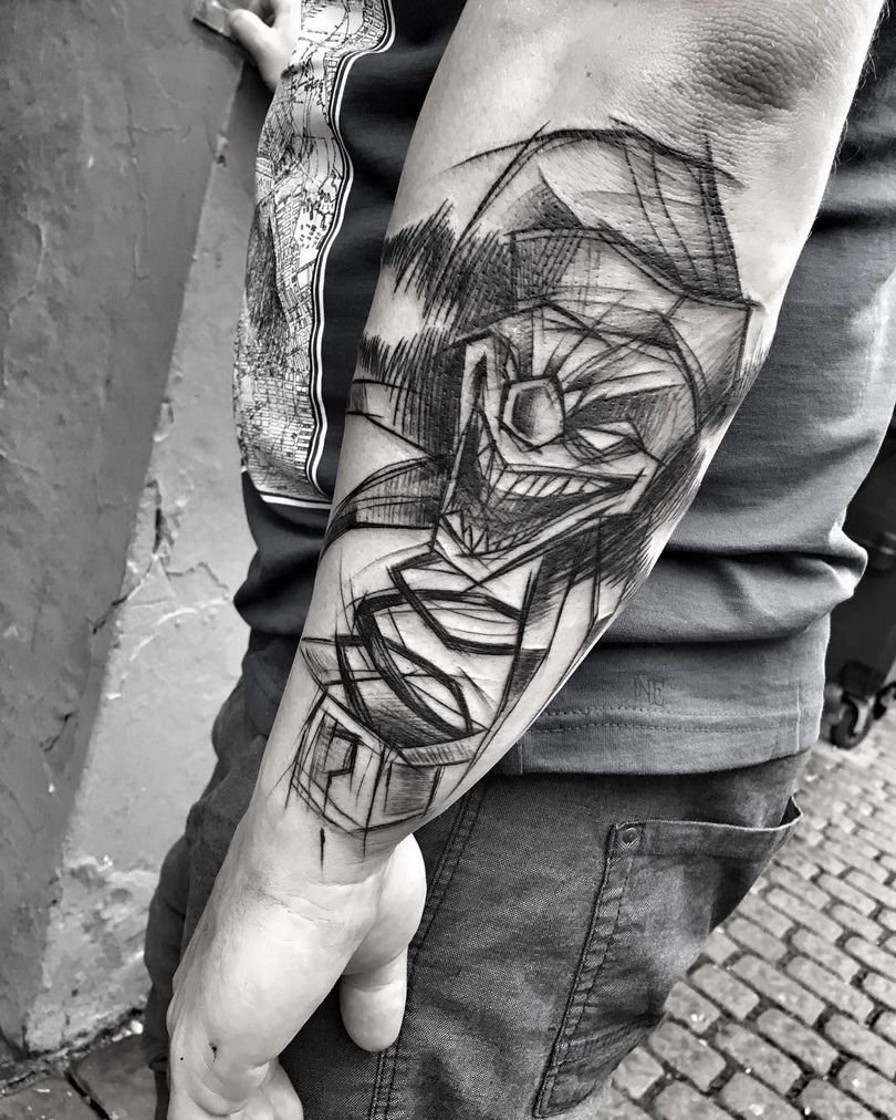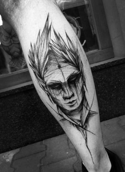 Татуювання, виконане в стилі скетч, вигідно виділяється на фоні інших технік.