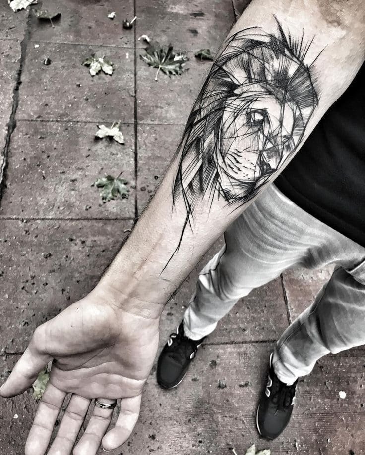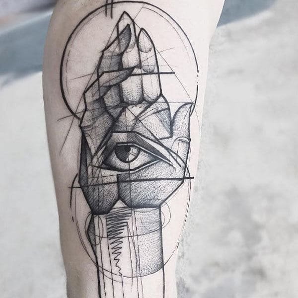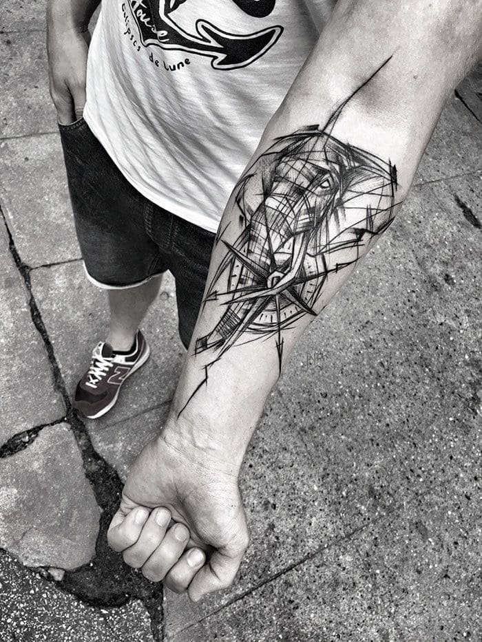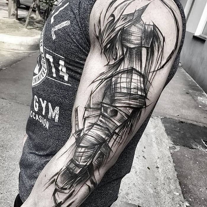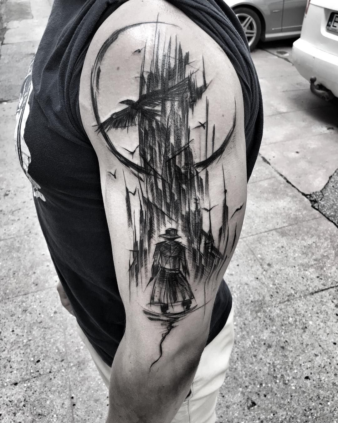 Татуювання, виконане в стилі скетч, вигідно виділяється на фоні інших технік.