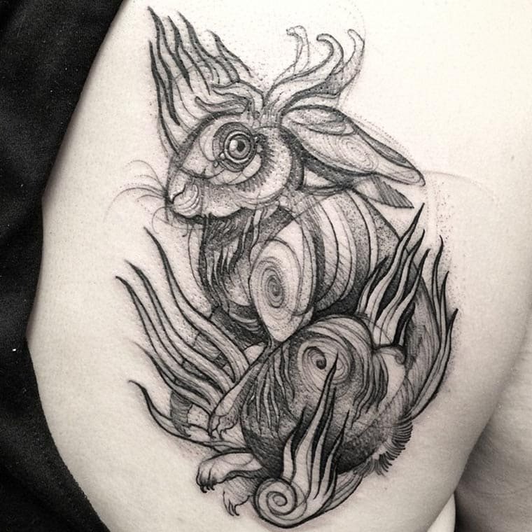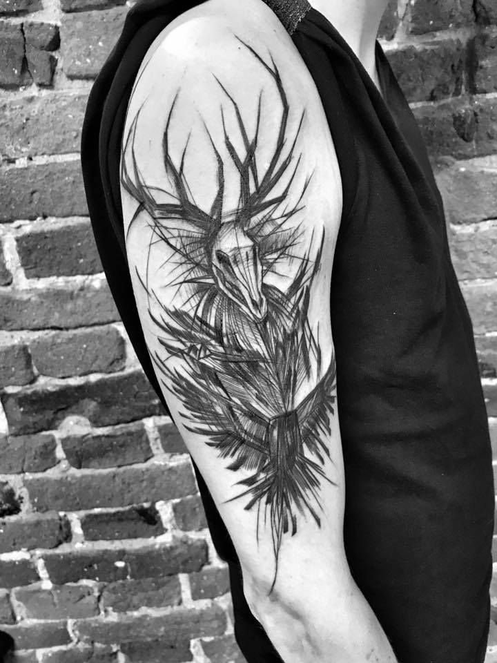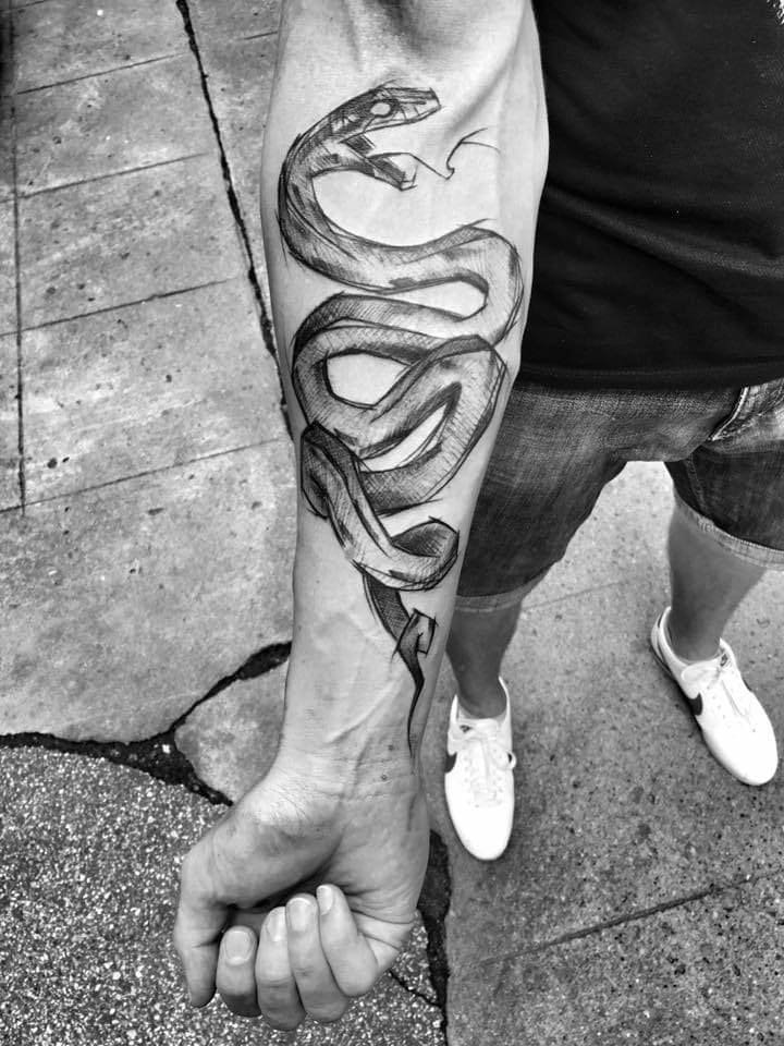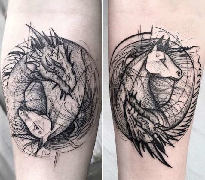 Татуювання в такому стилі легко переробити або доповнити новими деталями. Наприклад, додати в композицію яскраві кольори. Ефектно виглядатиме зображення з плавним переходом зі стилю акварель в скетч. А графічне зображення дракона в японському стилі стане родзинкою скетч тату.