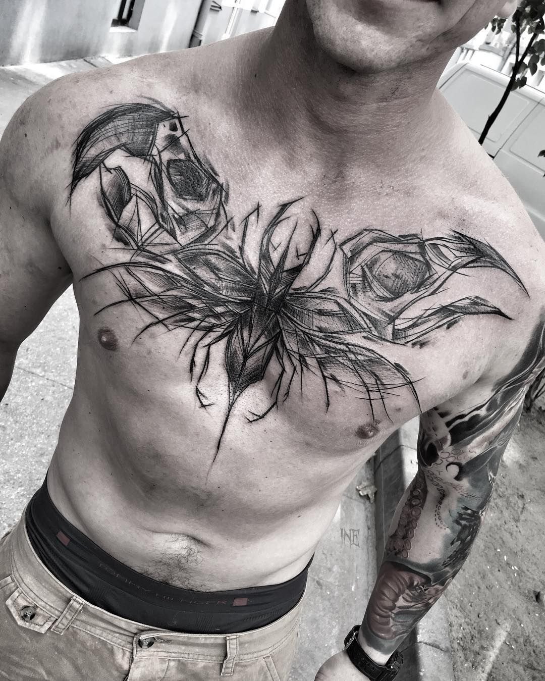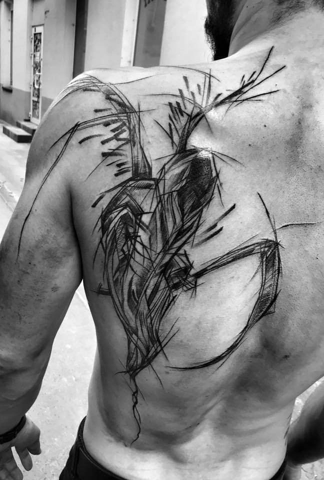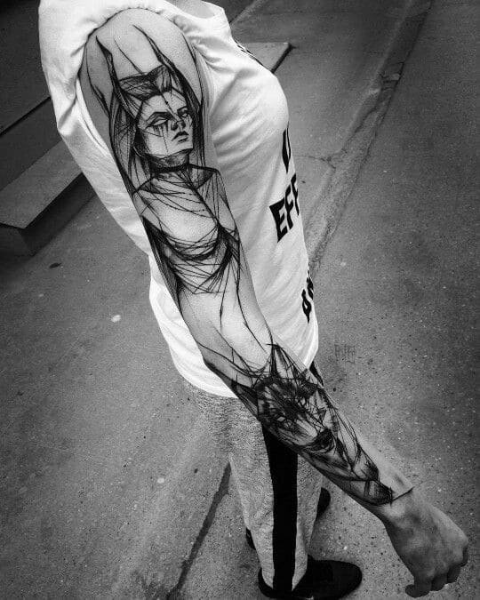 Скетч стиль - це ідеальне тату для тих, хто вперше зважився зробити натільний малюнок.