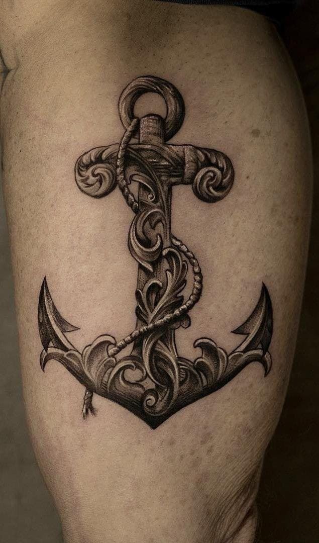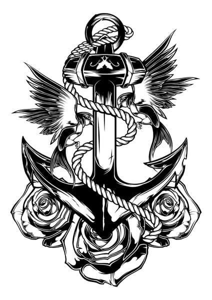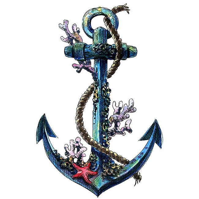 Він гармонійно виглядає в реалістичному виконанні, особливо якщо додати елементи морської тематики, як-от канати, вітрильники або ланцюги. Стиль традишнл також популярний для таких малюнків - це яскраві та чіткі контури, насичені кольори. Для любителів мінімалізму підійде просте і лаконічне зображення, виконане в чорному кольорі.