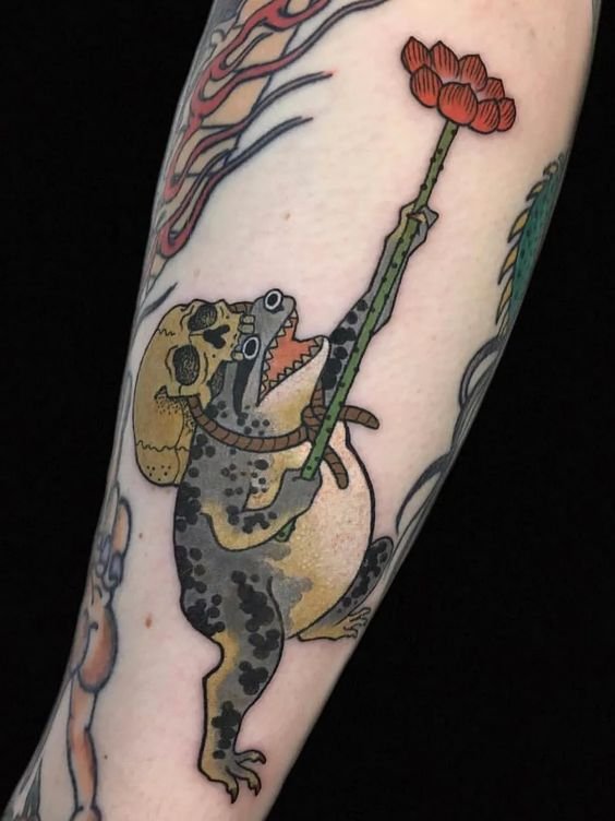 Так само на значення татуювання з жабою впливає саме зображення жаби: