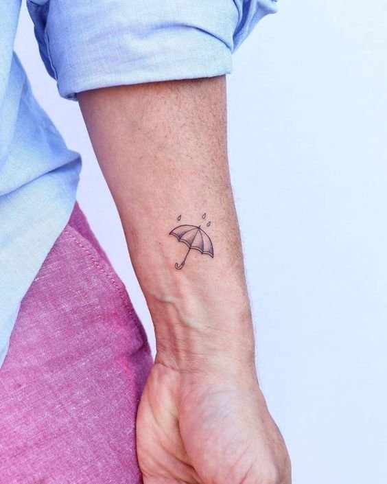 - Парасолька на чоловічому тілі уособлює впевненість свого власника, а так само вміння захистити себе та своїх близьких. Так само зображення парасольки говорить про те, що його володар шукає життєву опору й підтримку, бажає бути коханим, знайти рідну людину.