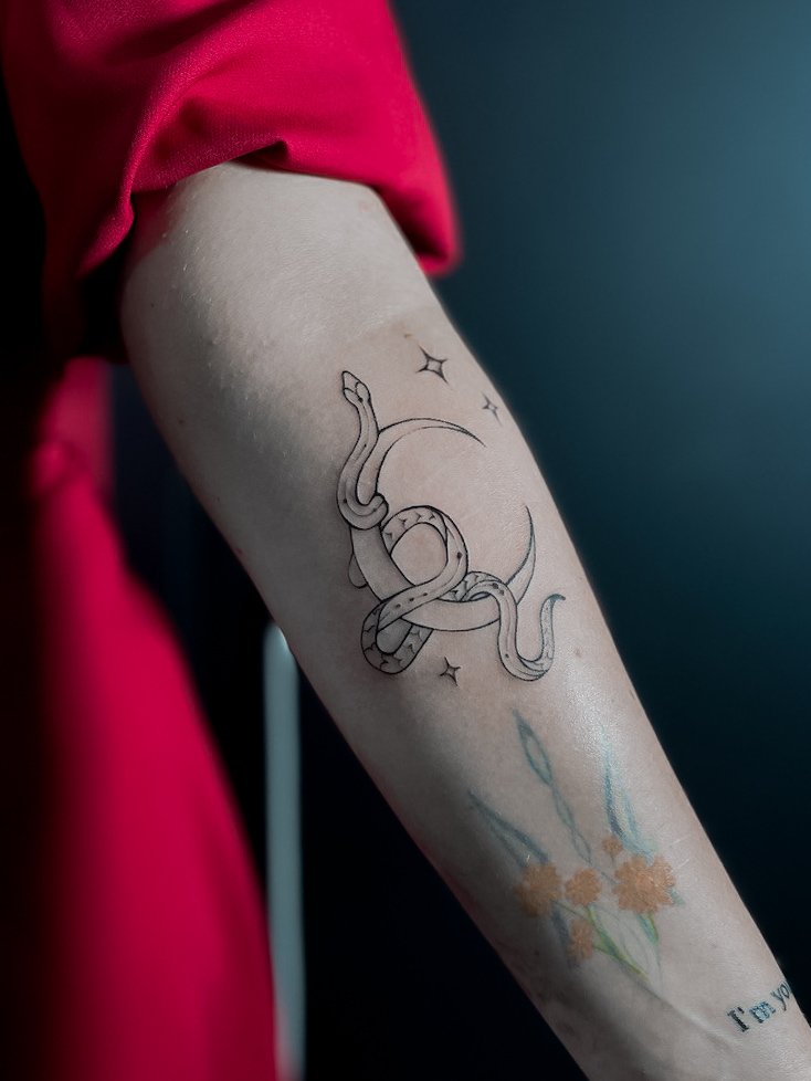 Я створюю як маленькі, так і великі татуювання, працюю з чорно-сірими відтінками і кольоровими мотивами, а також експериментую з абстракцією, мікрореалізмом і скетчем. Особливо мені близька ботаніка і грейвош, де я можу висловити свою любов до деталей і природи.