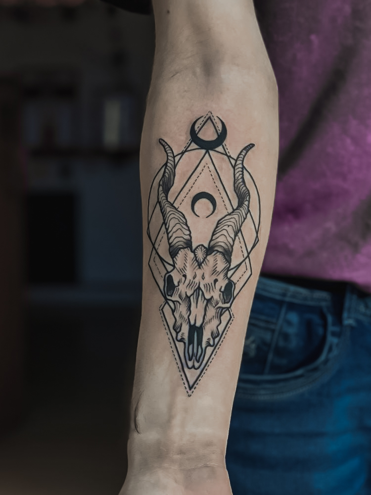 #Тату на предплечье череп козла